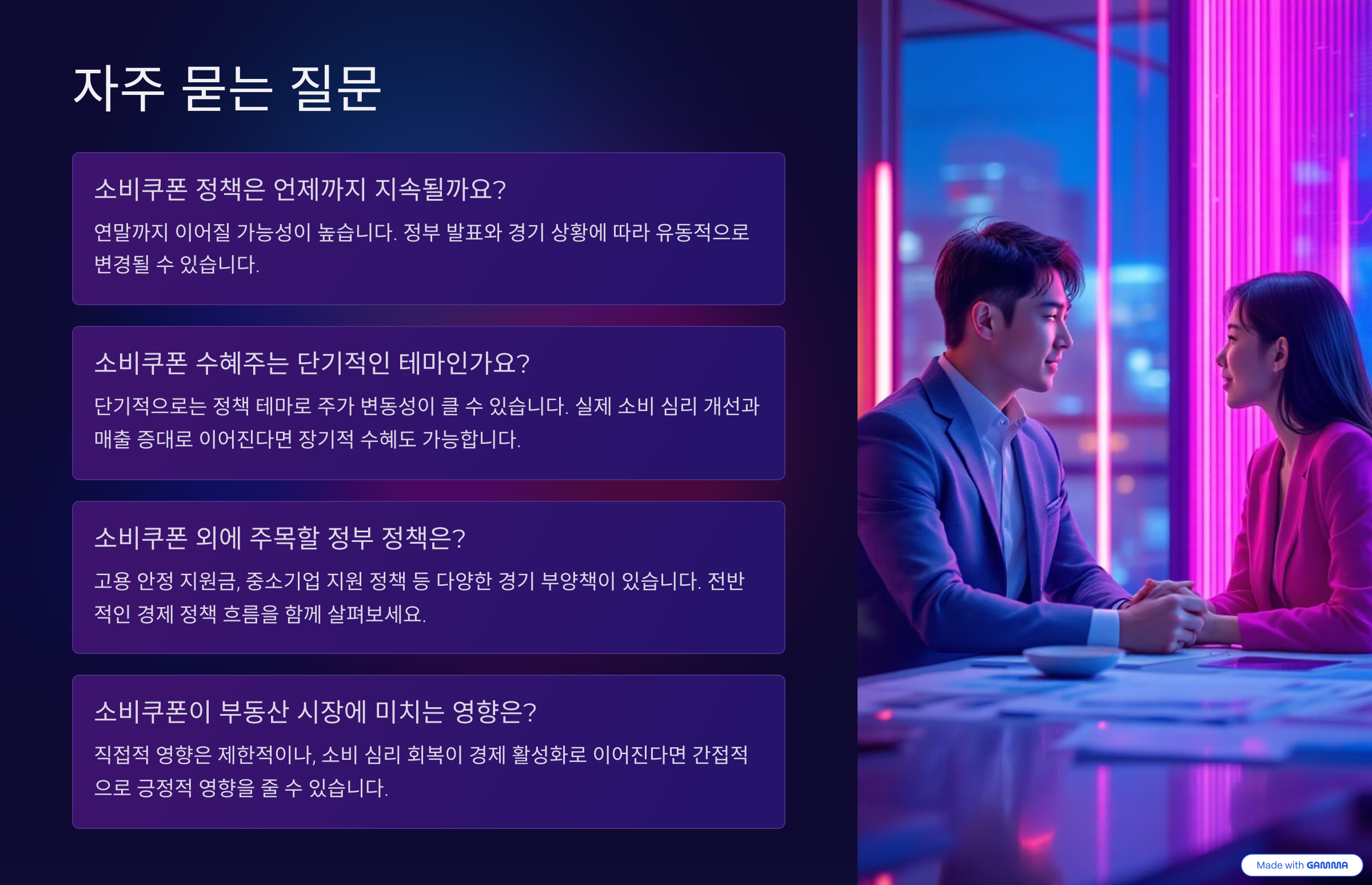 소비쿠폰 정책은 단기적인 소비 진작 효과뿐만 아니라, 장기적으로는 소비 습관 변화나 특정 산업의 성장을 가속화할 수도 있습니다. 단순한 일회성 이벤트가 아닐 수 있다는 점을 인지하는 것이 중요합니다.